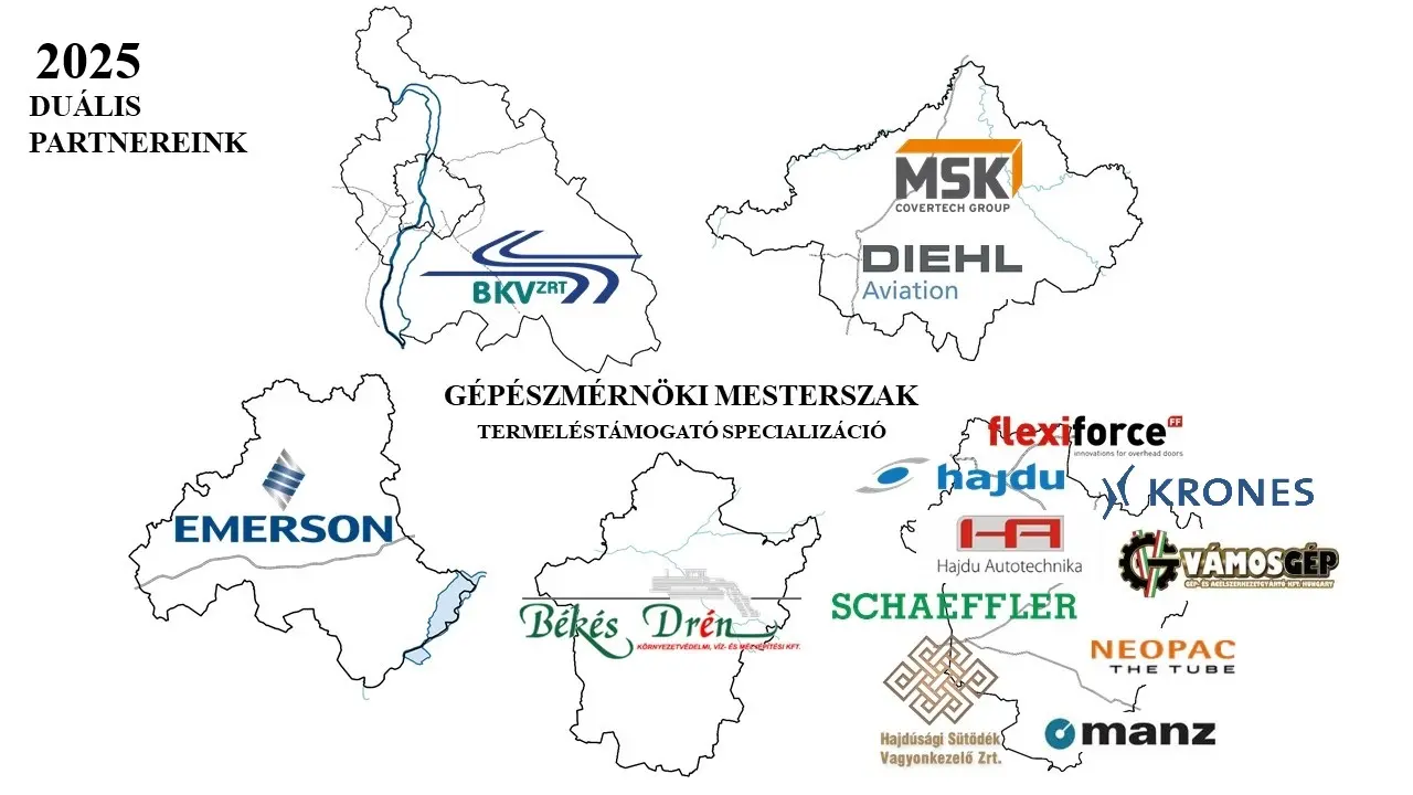 A Műszaki Kar duális képzésében együttműködő ipari partnerek a régió legkiválóbb vállalati közé tartoznak, így a náluk megszerzett gyakorlati tapasztalat jelentős versenyelőnyt jelent a duális rendszerben végzettek számára. A kiválasztott vállalat nevére kattintva tekinthetők meg a jelentkezéshez szükséges információk (kapcsolattartó, pályázati dokumentumok, jelentkezési határidő).